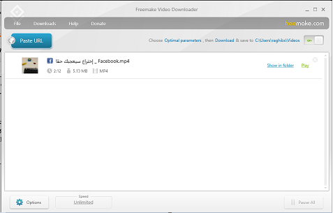 فيكفي ان تقوم فقط بتبيث البرنامج لكي يتم إضافة Addon إلى المتصفح يسهل عليك تحميل الفيديوهات من بعض مواقع الفيديو المعروفة مثل يوتوب فقط عبر النقر على الزر Download . غير ذلك بالنسبة لفيسبوك والمواقع الاخرى فيكفي ان تنسخ الرابط اعلى الفيديو المراد تحميله تم النقر على على زر paste URL ليتم تحميل الملف المرئي بأقصى سرعة .